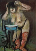 Dopo il bagno, anni ’80, olio, cm 50x40, esposta "omaggio a Chiancone", Bottega delle Arti, Mola di Bari